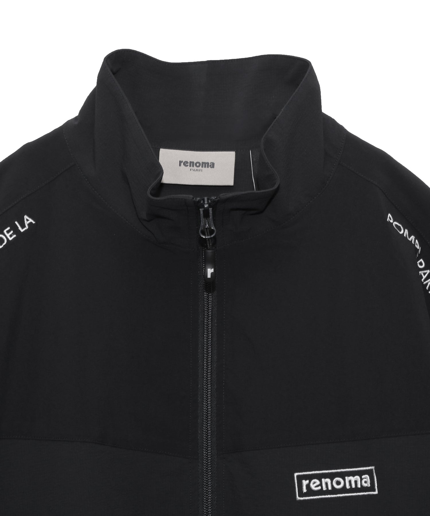 肩の切り替え部分には、Renomaらしいアイデンティティを刻む刺繍を配置。