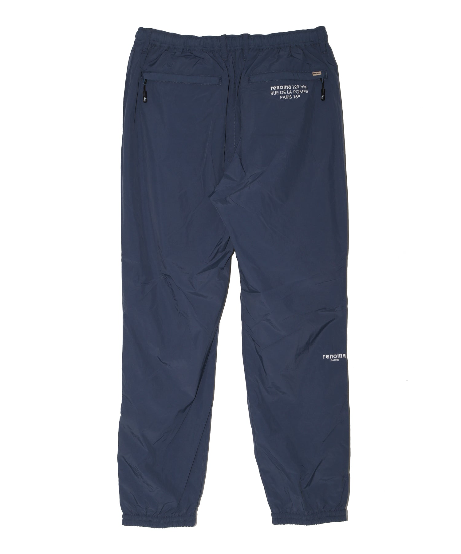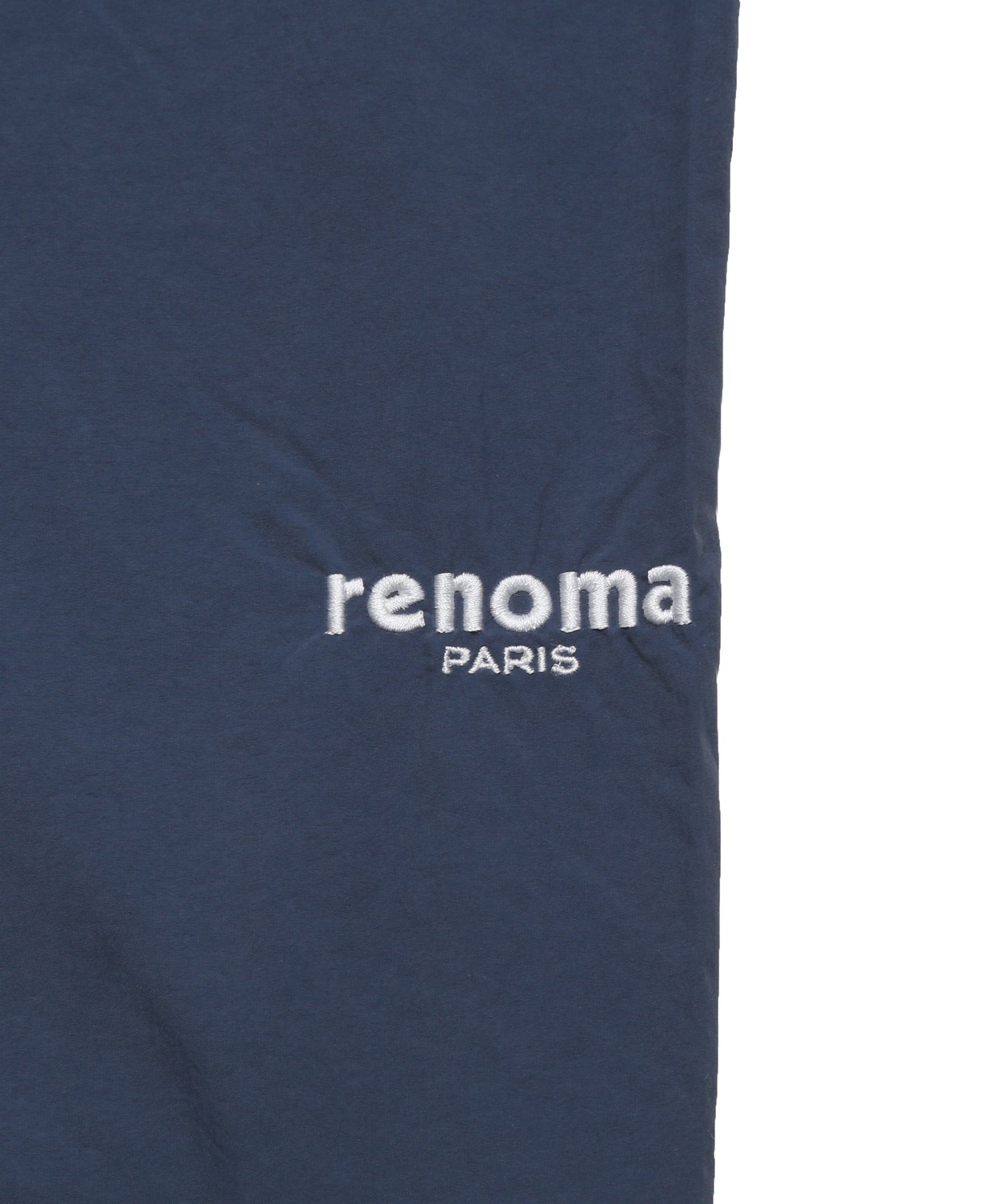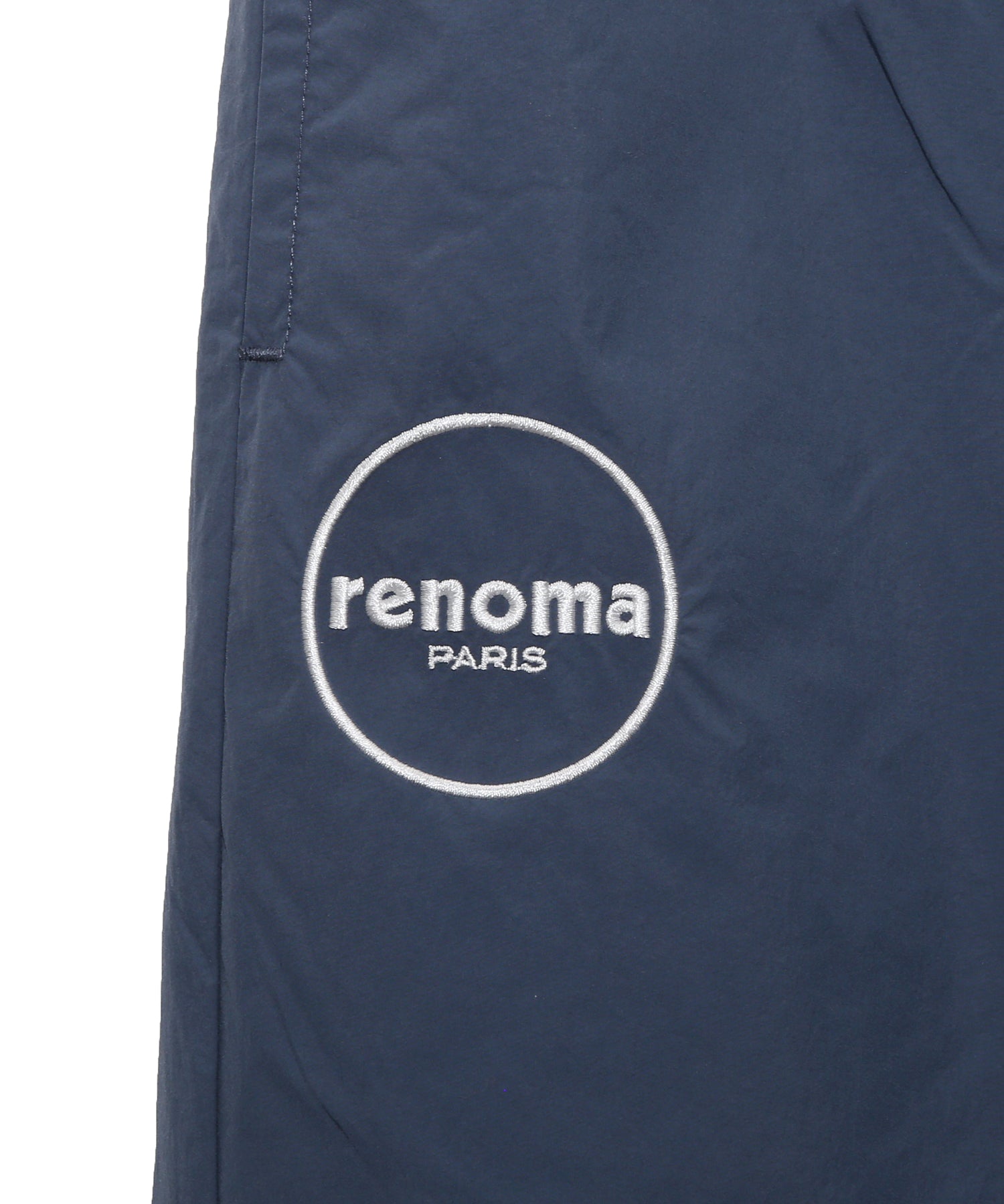 2箇所に配したブランドロゴの刺繍に加え、後ろポケットにはレノマ本店のアドレスを刺繍で表現。細部までこだわったデザインが、上質感を演出します。